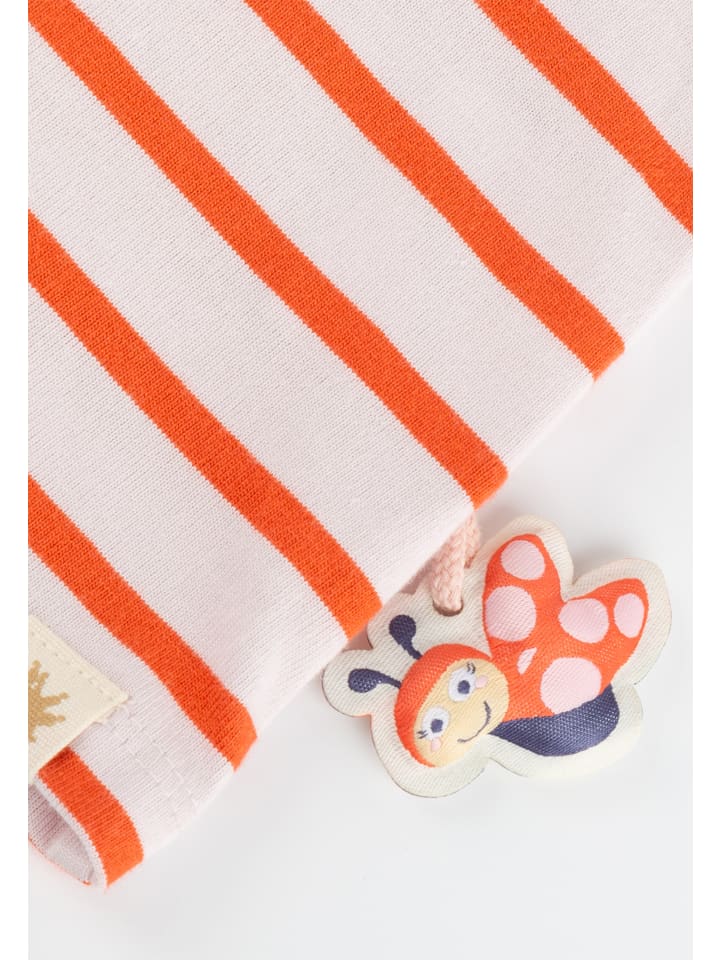 - Верх выполнен из полосатого трикотажа розового и красного цветов