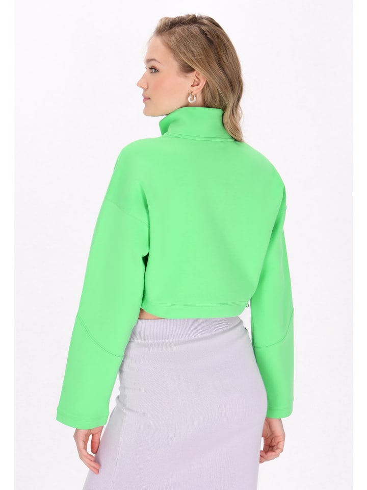 - Укороченная толстовка свободного кроя с воротником-стойкой и длинными рукавами
