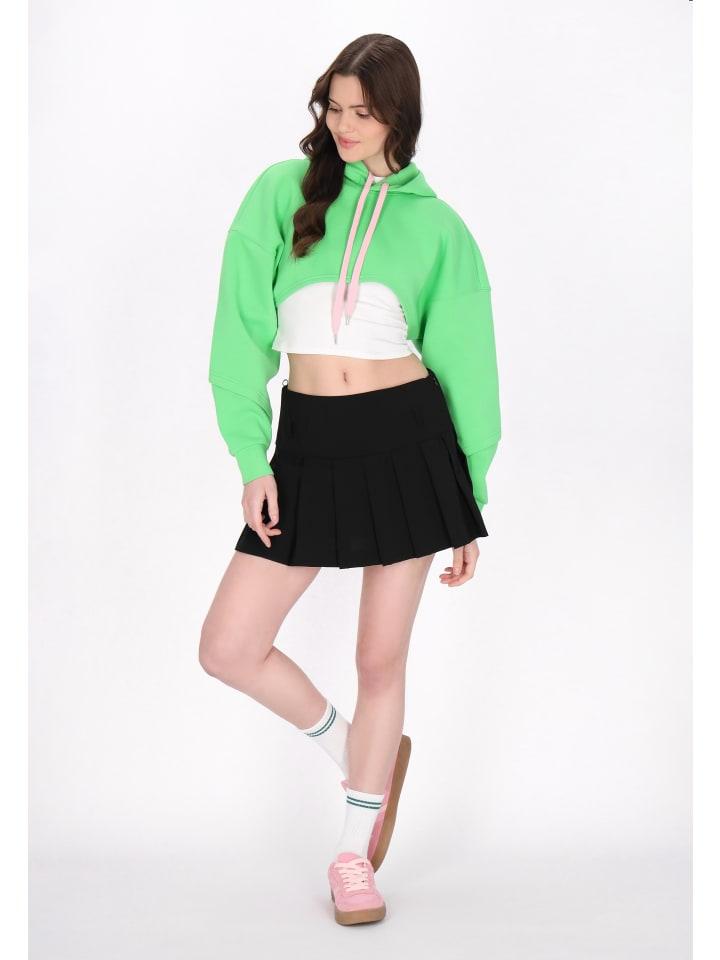 Обновите свой стиль с помощью этой модной толстовки свободного кроя и укороченного кроя. Капюшон, длинные рукава, спущенные плечи и завязка на шнурке добавят универсальности вашему образу. Изготовлено из трикотажного полотна. В сочетании с юбкой эта элегантная толстовка создает молодежный силуэт, воплощающий комфортную повседневную моду. Идеально подходит для возвращения в школу и создания молодежного образа. Является частью коллекции «Назад в школу». - Укороченная толстовка с длинными рукавами