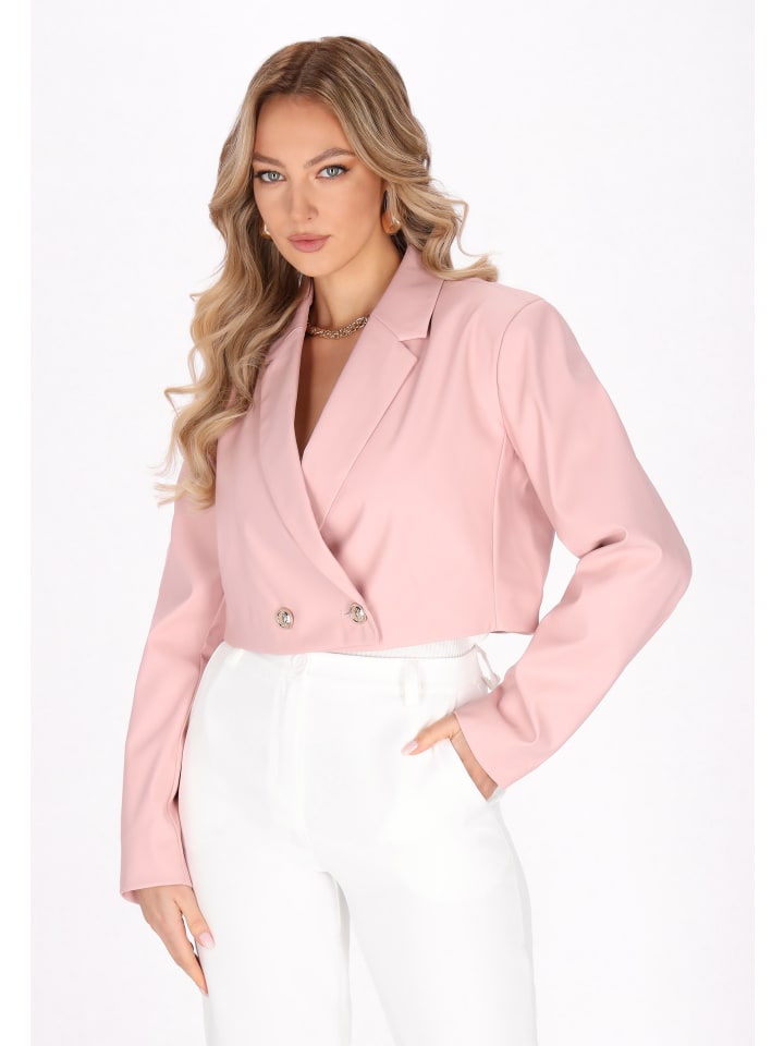- Regular Fit Cropped Doublebreasted Jacket With V Neck And Long Sleeves