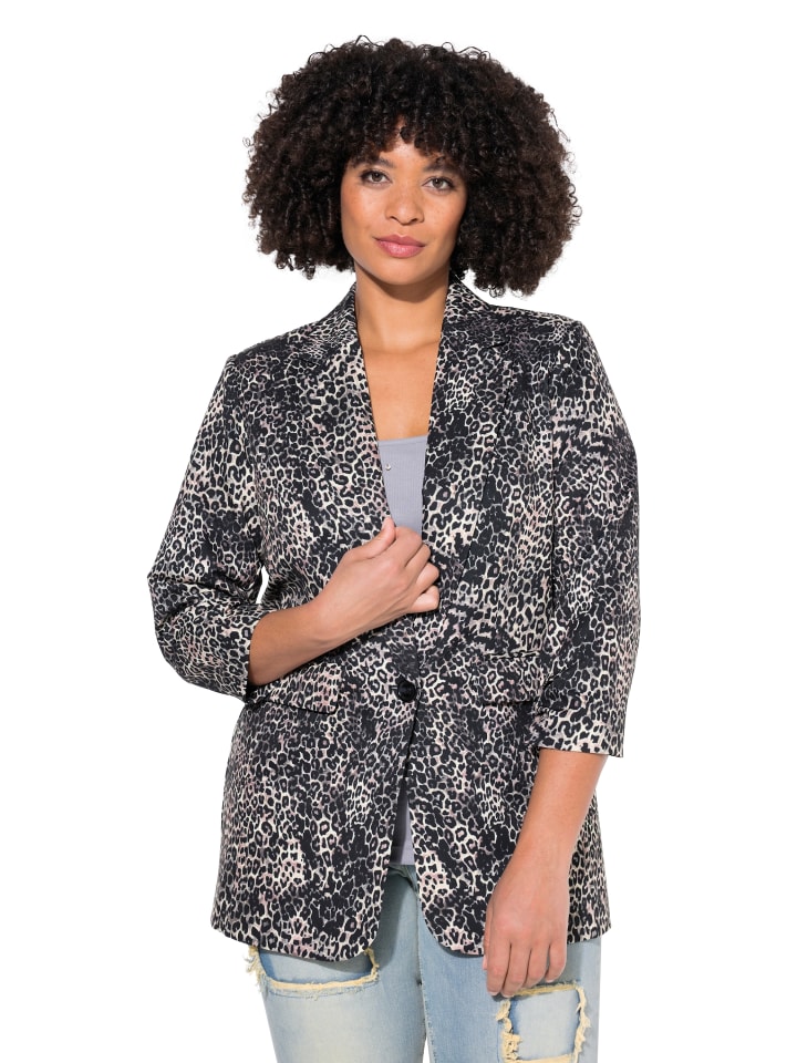 Блейзер удобной формы с льняным принтом, воротником с отворотом и рукавом 3/4 с гофрированным вырезом. 2 кармана с клапанами, полная подкладка.Материал
