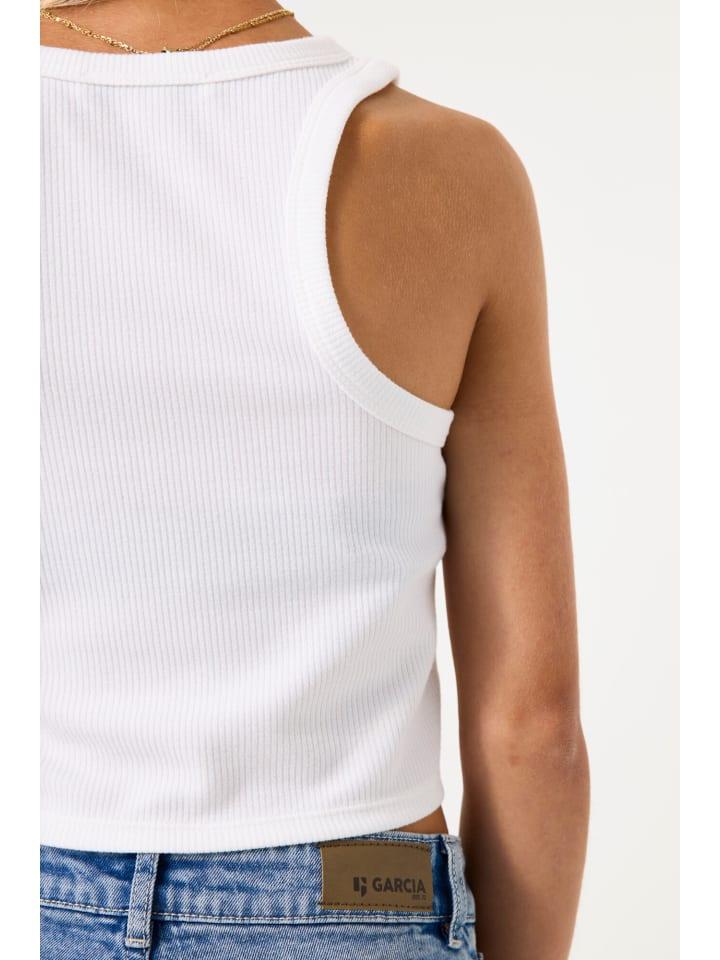 Укороченный топ Garcia для девочек и подростков, изготовленный из смеси полиэстера, переработанного полиэстера и эластана, идеально подходит как для повседневной носки, так и для занятий легкими видами спорта. Он имеет модный дизайн с кольцевой спинкой и короткий крой, который идеально сочетается с брюками или юбками с высоким вырезом. Этот универсальный топ, доступный в белом и черном цветах, сочетает в себе стиль с комфортом и экологичностью благодаря использованию переработанных материалов. Обязательный предмет для любого молодого любителя моды.материалы