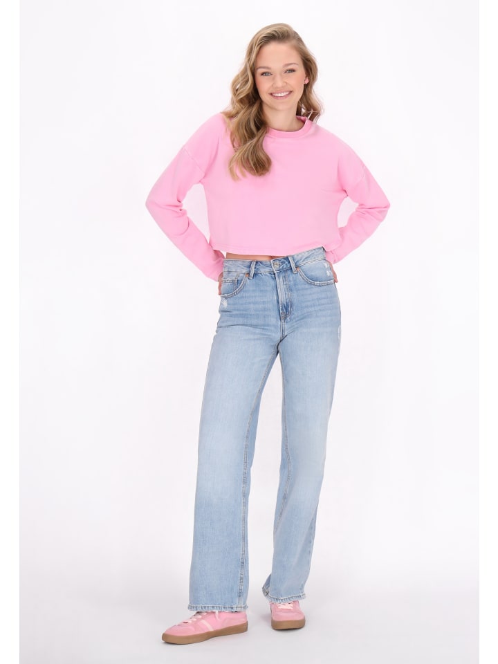 Создайте модный образ с помощью этой укороченной толстовки свободного кроя с длинными рукавами. Круглый вырез с ребристой отделкой подчеркивает стиль, а спущенные плечи обеспечивают комфорт при повседневной носке. Изготовлено из трикотажного полотна с эффектом потертости и идеально подходит для молодых модниц, желающих разнообразить свой гардероб. Идеально подходит для школы или повседневных мероприятий. Является частью коллекции Fashion Look.