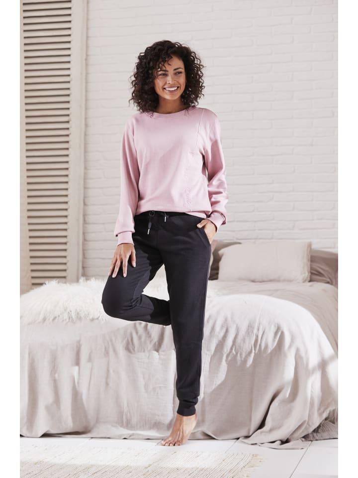 Классическая толстовка от Vivance. Вышивка тон в тон спереди. С круглым вырезом. Манжеты и подол — резинка. Мягкий свитер.