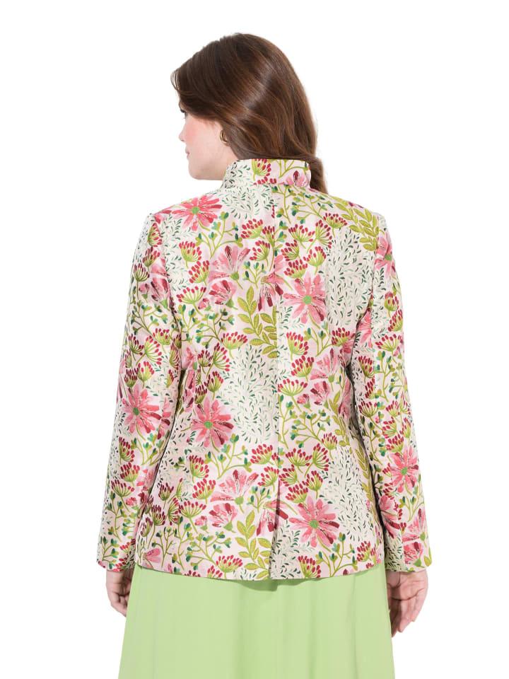 Жаккардовый жакет, удобный, слегка облегающий саржевый крой, изготовлен из высококачественного тканого жаккарда с цветочным узором. Воротник-стойка, планка на пуговицах, накладные карманы. Длинный рукав, полная подкладка для идеального комфорта.материал