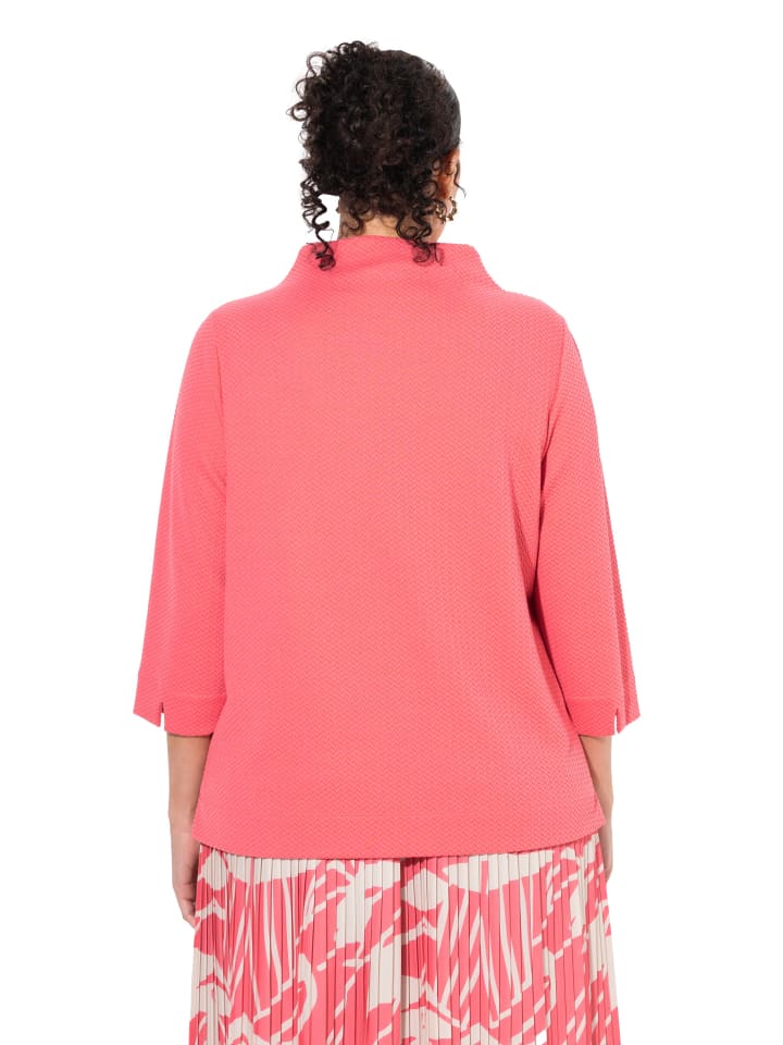 Свитшот, удобный покрой, из мягкого трикотажа с тонкой структурой. Воротник-стойка, декоративные складки на плечах. Рукава 3/4. Боковые разрезы для удобной посадки. Материалы