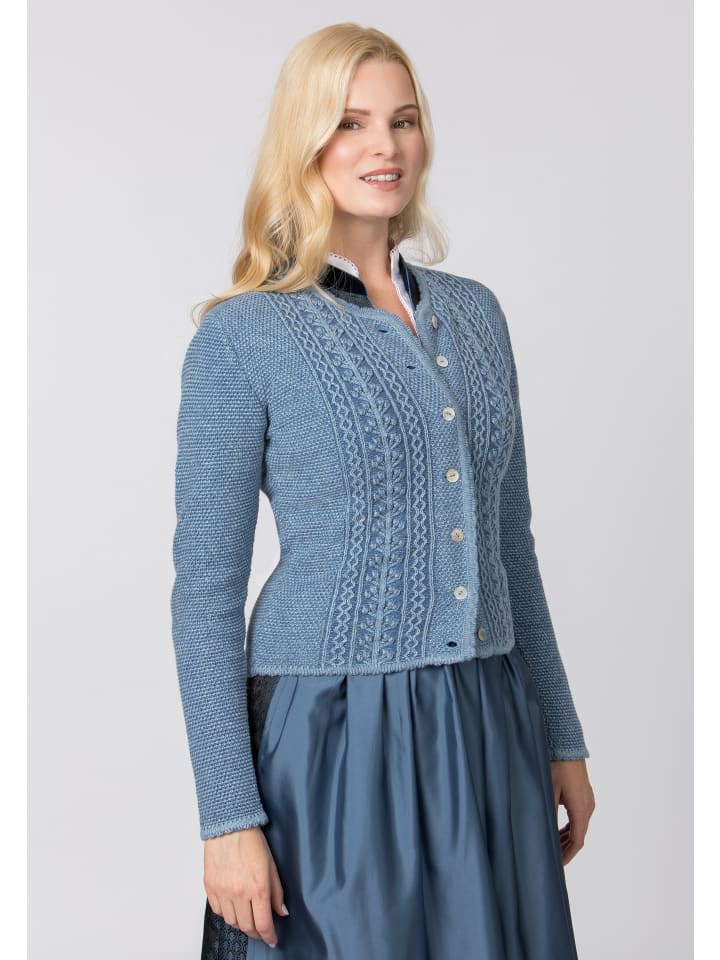Традиционный кардиган Mabella от Heimatgwand. Уютная, мягкая пестрая шерстяная пряжа придает куртке характерный традиционный вид в неподвластном времени стиле. Детализированная структура вязки косами, слегка контрастные края и изящные карманы завершают образ этого изделия, выполненного в традиционном стиле. Декоративные перламутровые пуговицы искусно обрамлены и придают кардигану особый, подлинный традиционный шарм. Слегка приталенный крой обеспечивает привлекательную посадку и высокий комфорт при ношении. Незаменимая вещь для множества случаев.