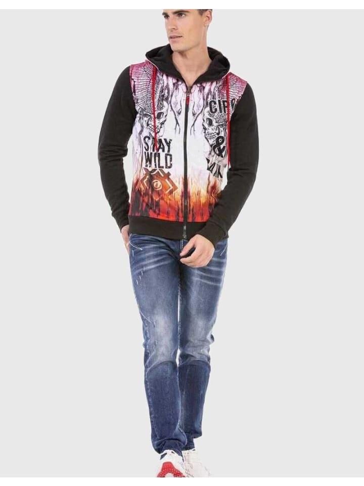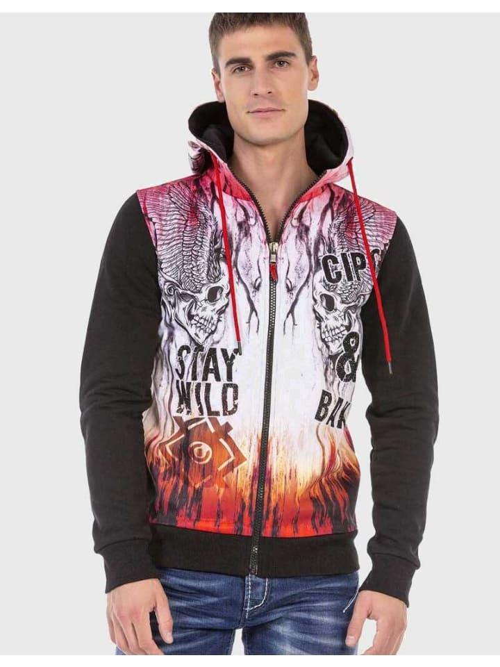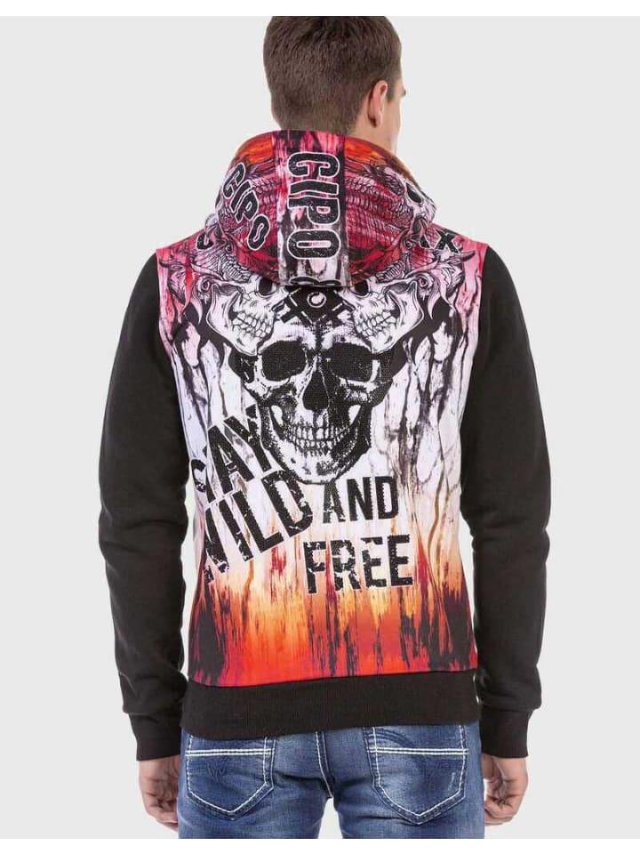 Эта толстовка-куртка от Cipo & Baxx с крутыми принтами черепов спереди и сзади станет ярким акцентом, который добавит красок в ваш гардероб даже в холодные дни осени и зимы. Элементы с изображением черепа дополняются крупными фирменными принтами и надписями, которые также можно найти на уютном капюшоне, который можно регулировать с помощью шнурка. Эластичные манжеты предотвращают скольжение, а конструкция из хлопка и полиэстера обещает уют и комфорт. - Яркая толстовка от Cipo & Baxx для мужчин