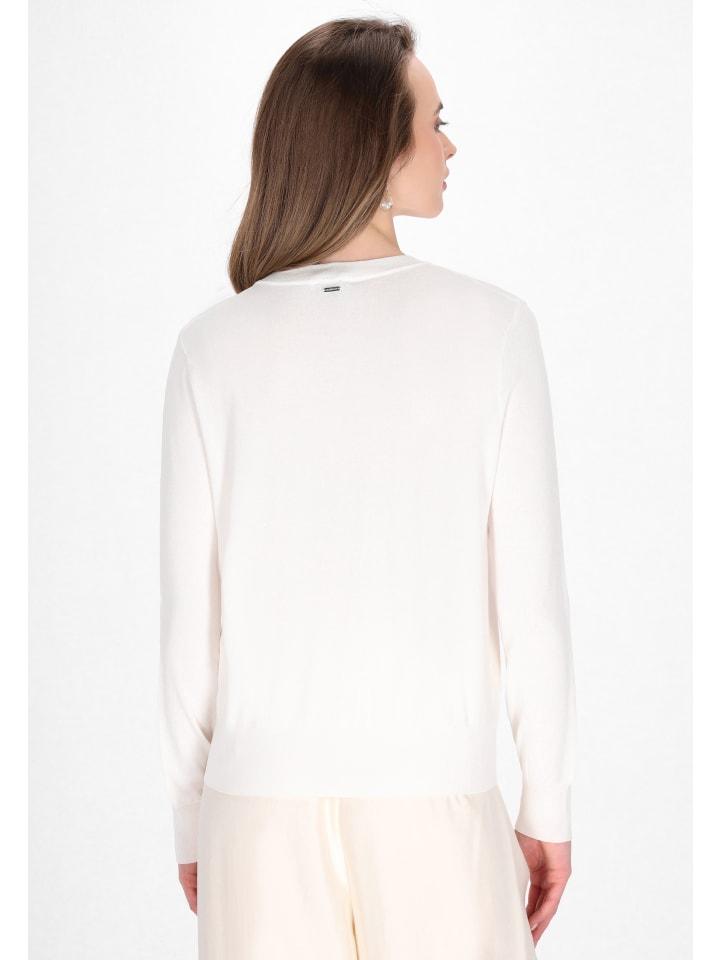 - Кардиган классического кроя с круглым вырезом и длинными рукавами