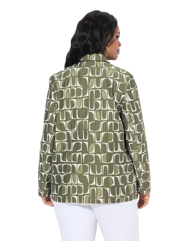 Жакет слегка А-силуэта с графическим жаккардовым узором, аккуратно сотканный. Воротник рубашки, планка на пуговицах, длинные рукава. Скрытые карманы в швах, полностью на подкладке для идеального комфорта. Материалы: Внешний материал: 56% хлопок, 40% полиэстер, 4% эластан
