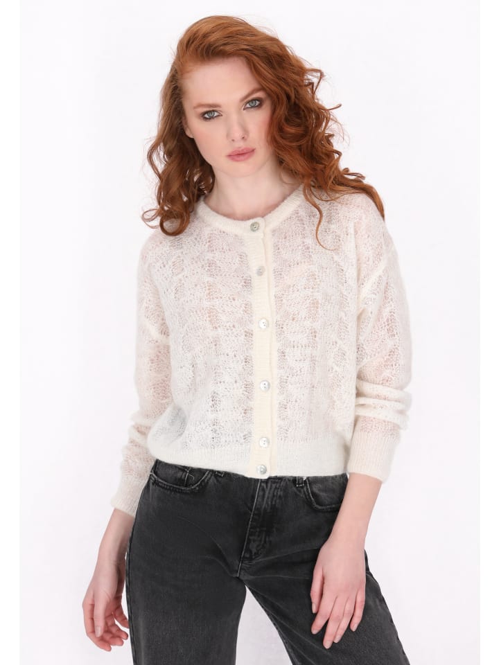 Подчеркните свой повседневный стиль с помощью этого классического вязаного кардигана. Модель свободного кроя с длинными рукавами и круглым вырезом горловины создает непринужденный образ. Спущенные плечи придают изделию непринужденный вид, а ажурный узор подчеркивает его винтажное очарование. Этот удобный кардиган идеально подходит для создания многослойного образа и подойдет для любого случая. Часть винтажной коллекции.