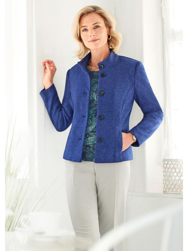 Пиджак пушисто-мягкого качества. Благодаря благоприятной для кожи вискозе пиджак особенно удобен в носке. Отложной воротник, венская строчка и небольшие наплечники придают пиджаку женственную форму. Длинные рукава на подкладке. С карманами с мелкими швами. Длина ок. 62 см в упаковке 46, около 59 см в упаковке 23.