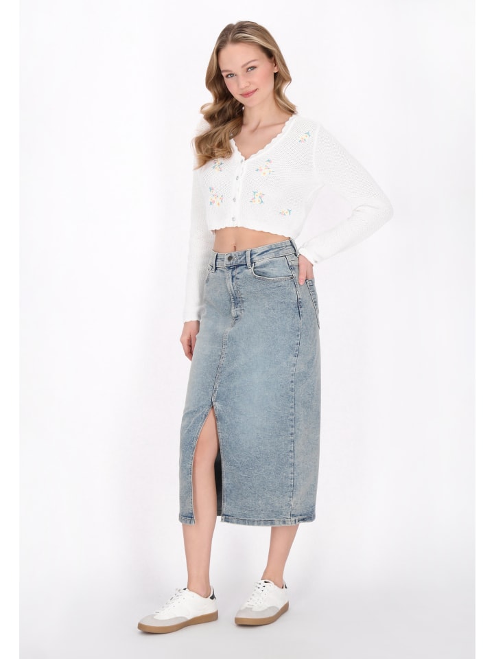 Укороченный кардиган с текстурной вязкой, V-образным вырезом и длинными рукавами. Украшено вышитым цветочным узором, застегивается на пуговицы со стразами по центру. Длинные рукава сужаются к запястьям, создавая модный и очаровательный образ, идеально подходящий для ношения поверх различных нарядов в романтическом стиле. Является частью коллекции Comfy.