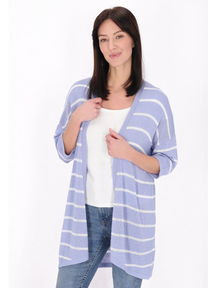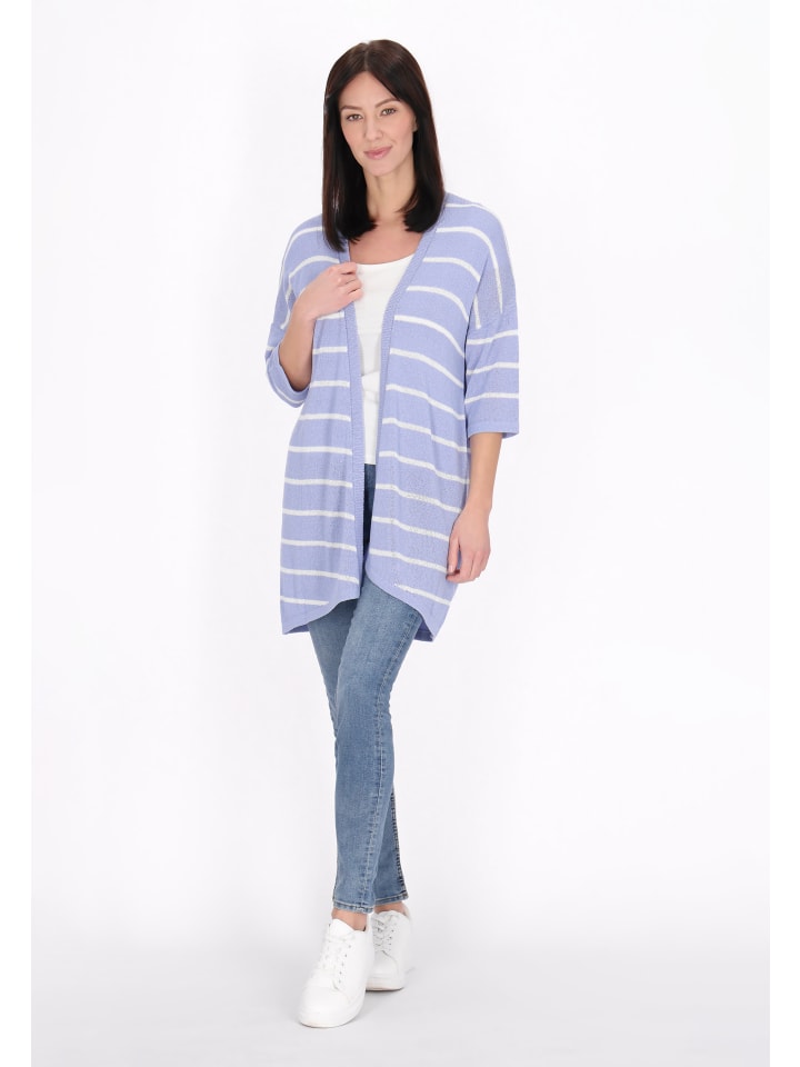 Дополните свой гардероб этим удобным кардиганом, созданным с учетом повседневного стиля. Открытый перед, классический крой, рукава 3/4 и спущенные плечи создают непринужденный образ. Полосатая вязка придает этому повседневному кардигану нотку шика, делая его идеальным для повседневной носки и согревая вас в течение всего дня. Часть коллекции повседневной моды.