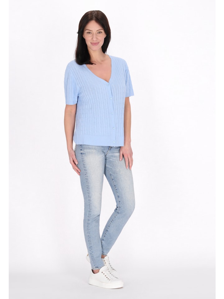 - Кардиган прямого кроя с V-образным вырезом и короткими рукавами