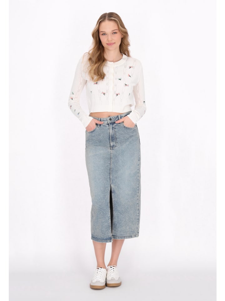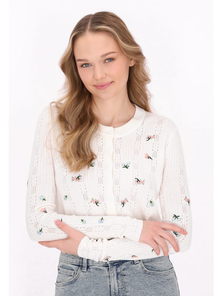 Этот укороченный кардиган украшен нежным ажурным узором с цветочной вышивкой по всей поверхности. Круглый вырез и длинные рукава сужаются к запястьям для плотного прилегания. В сочетании с джинсовой юбкой этот кардиган создает молодежный, модный образ, который идеально подходит для повседневной носки. Часть коллекции Comfy.