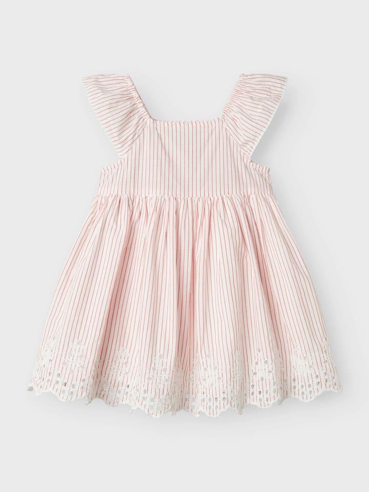 Летнее платье в полоску от Name it для девочек изготовлено из 100% хлопка и обеспечивает оптимальный комфорт и воздухопроницаемость. Платье отличается полосатым рисунком, эластичной талией, рукавами-крыльями и вырезом трапециевидной формы, дополненным элегантной кружевной отделкой по подолу. Он идеально подходит для детского сада, отдыха и особых случаев, так как его можно сочетать как с сандалиями для создания повседневного образа, так и с более модной обувью. Это универсальное и очаровательное платье наверняка станет фаворитом гардероба молодых девушек.материал