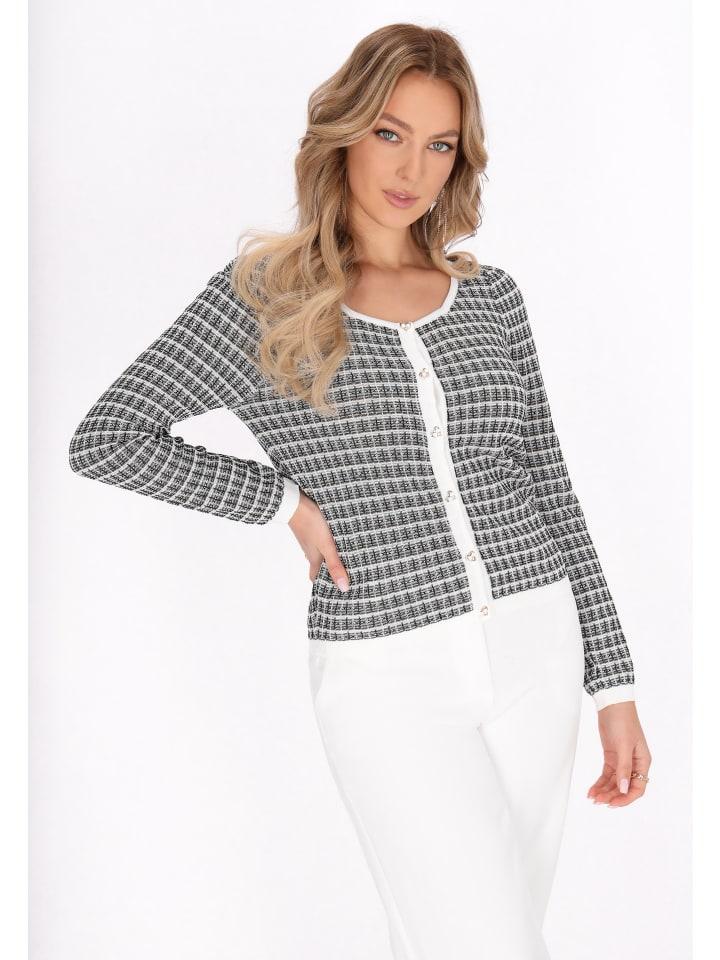 Откройте для себя очарование этого стильного кардигана из нашей коллекции Fashion Look. Благодаря прямому крою, круглому вырезу и длинным рукавам оно воплощает романтический стиль. Декоративная застежка на пуговицы и контрастная отделка подчеркивают элегантность, а вязаный узор в клетку добавляет изюминку. Удобный и в то же время шикарный, этот кардиган легко украсит любой наряд. - Кардиган прямого кроя с круглым вырезом и длинными рукавами