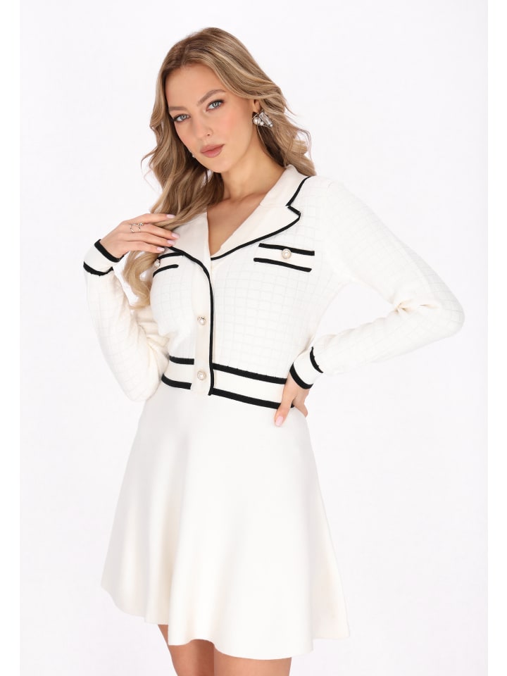 Подчеркните свой стиль с помощью этого элегантного облегающего кардигана с шикарным воротником с лацканами и застежкой на пуговицы спереди. Декоративные пуговицы добавляют стильный вид, а контрастная отделка на длинных рукавах подчеркивает привлекательность изделия. Этот удобный кардиган из трикотажного полотна в клетку создает морское настроение в нашей коллекции Fashion Look