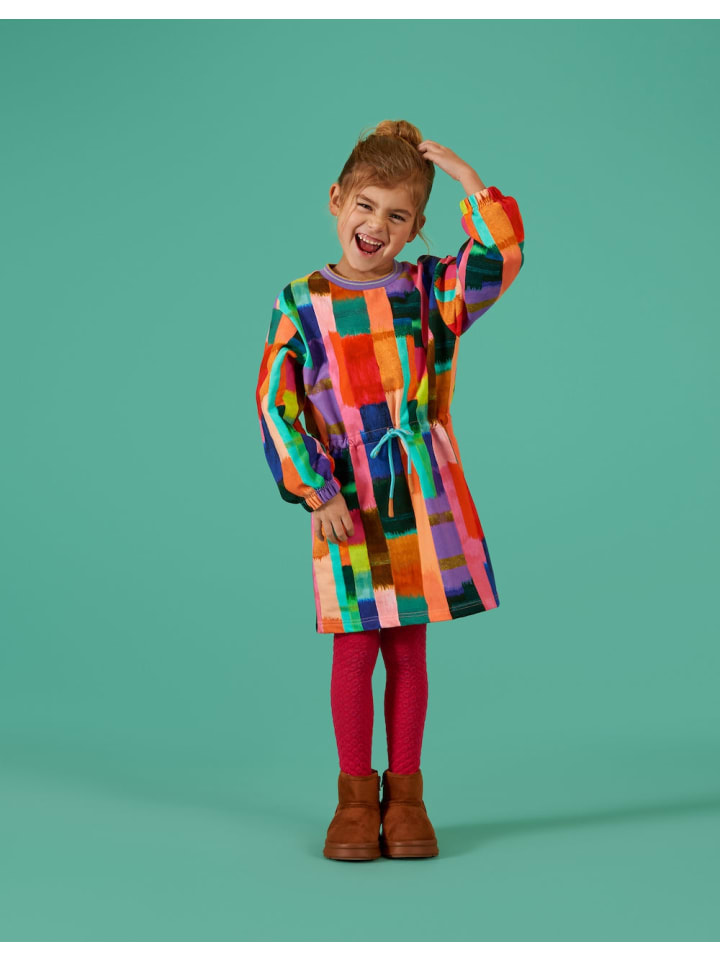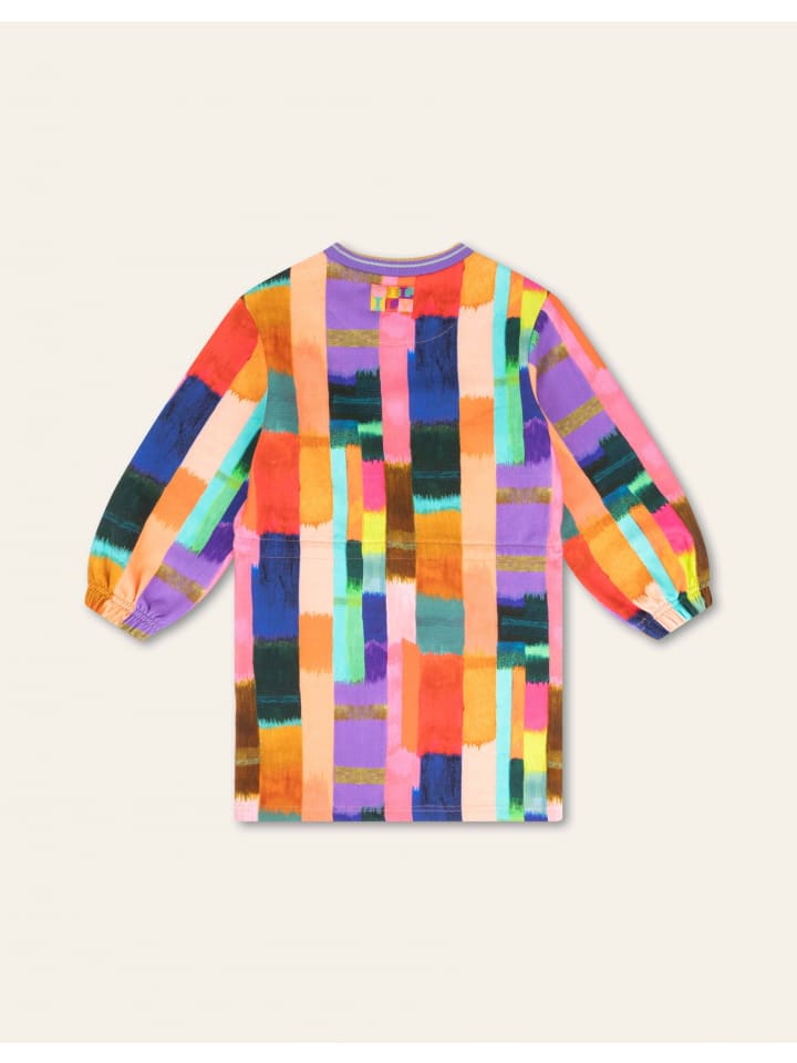 Рисуя полосы и линии на нашем принте Таки, мы использовали блестящую ручку и работали с как можно большим количеством цветов. Дизайн становится настоящей радостью на этом веселом платье свободного кроя.- Свободный крой