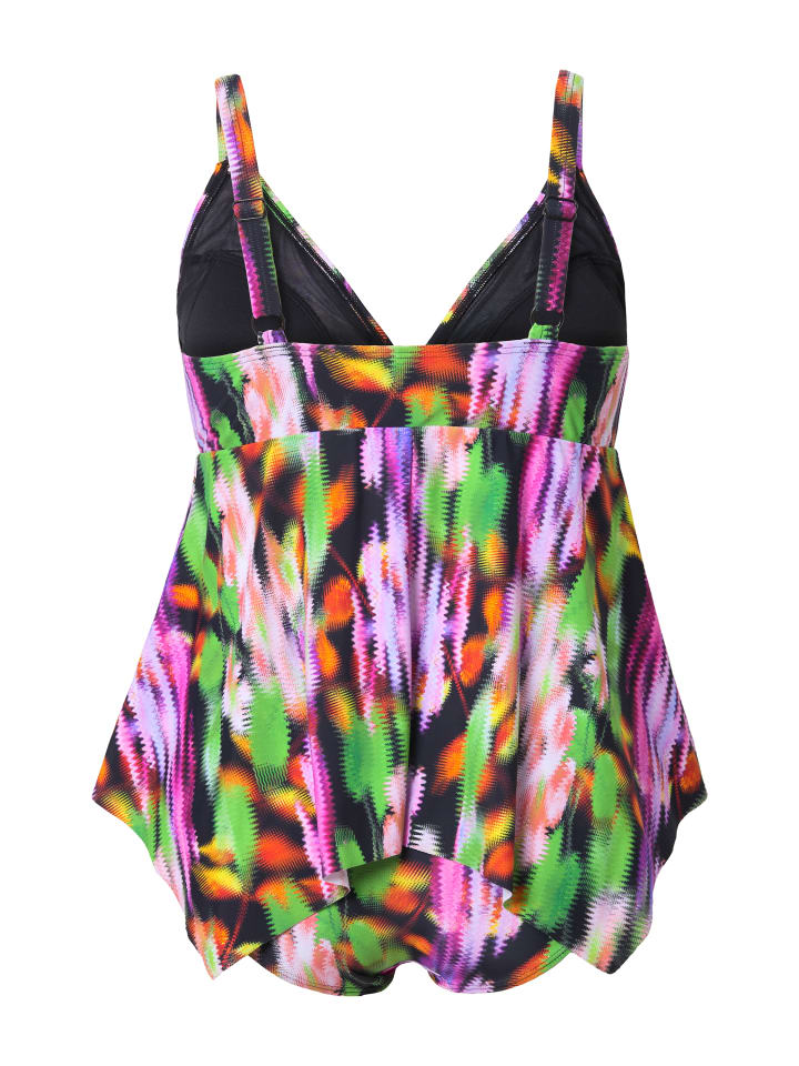 Танкини, состоящие из двух частей с цветным пиксельным рисунком. Более длинный верх с декоративным кольцом и кисточкой между мягкими чашечками. Подол на конце, регулируемые бретели, нижняя часть груди, передняя подкладка. Подходящие трусы. Изготовлены из переработанного полиамида. OEKO-TEX.материалы