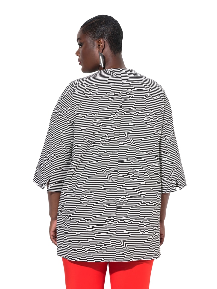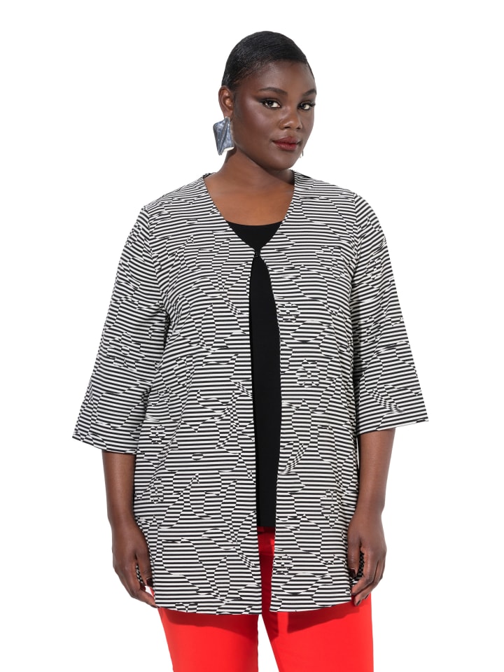 Пиджак классического кроя из гладкой хлопковой ткани с графическим полосатым рисунком. Скромная застежка на крючок под V-образным вырезом, рукава 3/4. Высококачественный салон с окантовкой. Материалы