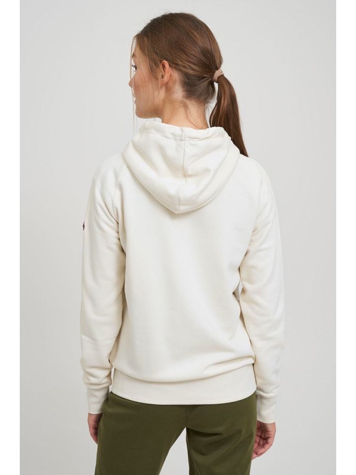 ДЕТАЛИ И ОСОБЕННОСТИ: Женская толстовка с капюшоном, слегка закругленные боковые карманы, логотип из искусственной кожи над подолом, эластичные манжеты на рукавах и подоле, кулиска на капюшоне с декоративными деревянными деталями, декоративная внутренняя подкладка в капюшоне и карманах, логотип на плече, стандартный крой