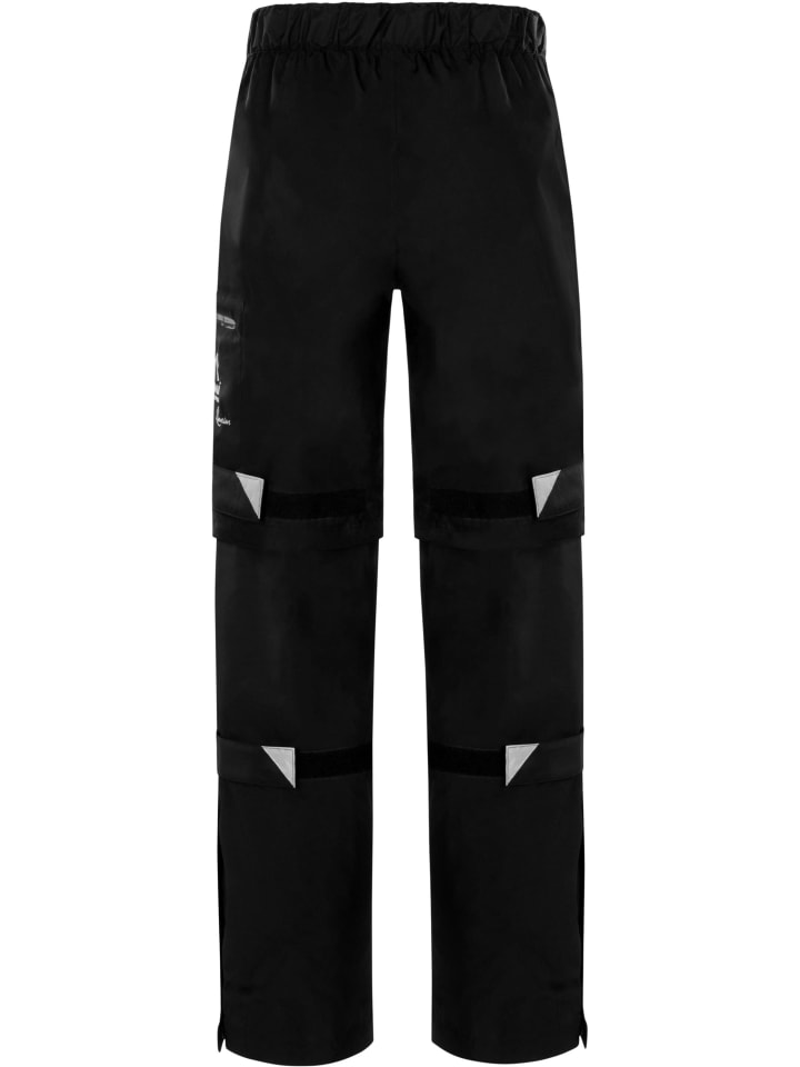 Какой амбициозный велосипедист или путешественник не знает об этом? Утром на велосипеде на работу и когда вы отправляетесь в однодневный тур, последние дождевые облака, оставшиеся с ночи, опускаются на сушу, в то время как после работы или по мере продвижения дневного тура температура повышается, и длинные брюки становятся слишком теплыми, чтобы их можно было носить. Застежки-молнии в области колен позволяют отделить нижние штанины, превращая непромокаемые брюки в короткие. Остальные штанины можно спрятать в карман куртки, рюкзака или велосипедной сумки. Чтобы предотвратить трепетание штанин при попутном ветре, застегните их на липучке, чтобы они плотно прилегали к телу. Благодаря этой особенности брюки также подходят для использования в качестве брюк-оверлей на лыжных склонах, при скалолазании или походах. Детали продуманы таким образом, чтобы защитить нижележащие термошорты от намокания.