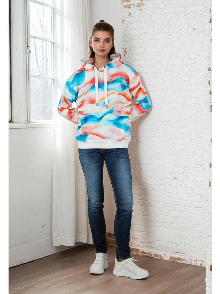 Откройте для себя нашу стильную толстовку с ярким разноцветным волнистым узором, которая добавит свежий акцент любому образу. Свободный крой обеспечивает оптимальный комфорт и свободу движений, а мягкое качество материала гарантирует приятные ощущения при ношении. Идеально подходит для повседневных будней или уютных вечеров — эта толстовка просто необходима женщинам, которые следят за модой и ценят стиль и комфорт! - мягкий