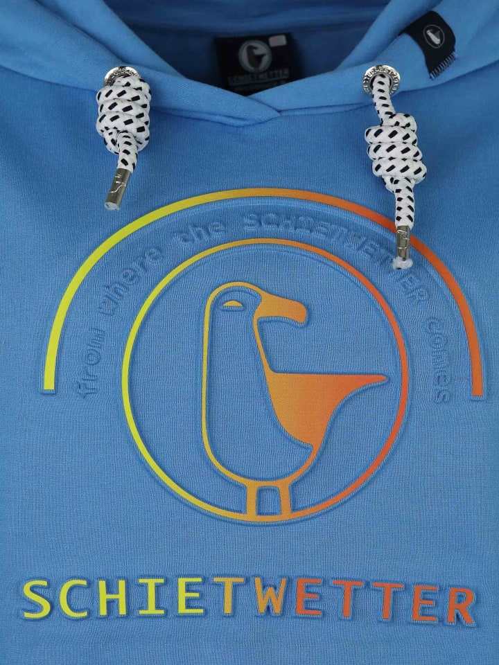 Толстовка с капюшоном впечатляет своим инновационным тисненым принтом и красочным цветовым градиентом нашего логотипа Schietwetter. Нашивки на рукавах, воротник-капюшон и большой карман на животе (также с нашим логотипом) завершают образ свитера. Благодаря продуманному дизайну эта толстовка с капюшоном станет идеальным универсальным предметом гардероба и вашим новым любимым свитером. Толстые завязки обеспечивают идеальную посадку капюшона — идеальный вариант для ветреных дней! Большой карман-кенгуру во всю длину не только защитит ваши вещи, но и сохранит ваши руки в тепле. Мягкая ткань приглашает вас закутаться в свитер, а ребристые манжеты на рукавах и животе обеспечивают оптимальную поддержку и комфорт при ношении. - ТИСНЕНАЯ 3D-ПЕЧАТЬ: Цветной логотип Schietwetter в тисненой печати