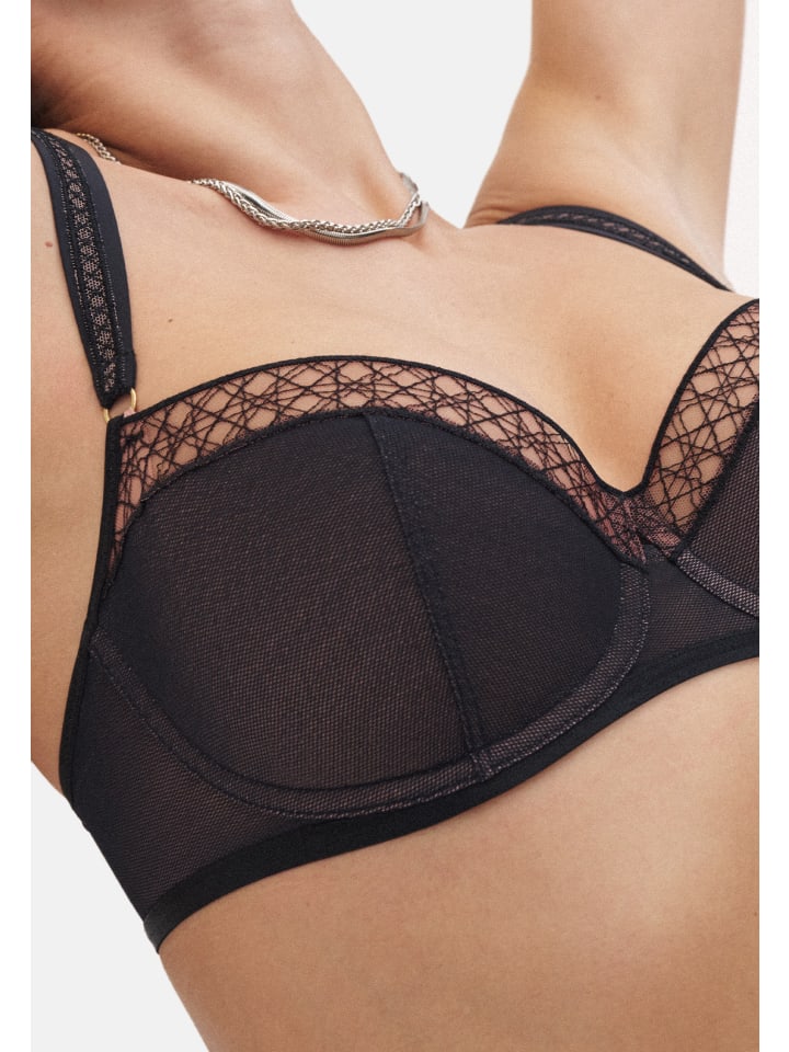 Бюстгальтер на косточках модной балконной формы сочетает в себе стильный дизайн и идеальную фиксацию. Чашки из легкой сетки и графическая вышивка придают ему современную элегантность, а вышитые бретели дополняют изысканный общий вид.