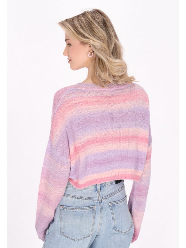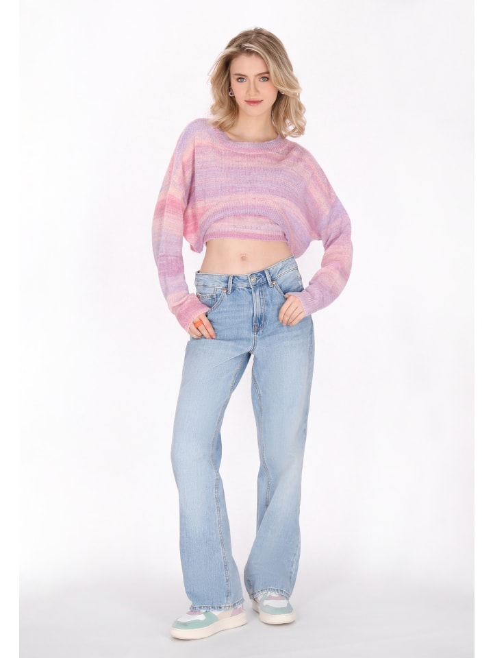 Подчеркните свой стиль с помощью этого модного, очень укороченного свитера. Модель свободного кроя с круглым вырезом и длинными рукавами обеспечивает максимальный комфорт. Трикотажное полотно имеет узор омбре, который добавит изюминку любому наряду. Этот свитер идеально подходит для повседневного ношения и станет незаменимой вещью для юных любительниц моды, которые ищут комфортные и элегантные образы в нашей коллекции «Назад в школу». - Укороченный свитер с круглым вырезом и длинными рукавами