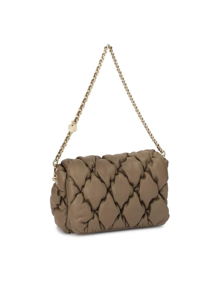 Сумочка из мягкой стеганой натуральной кожи серо-коричневого цвета имеет большой клапан и два типа ручек: элегантная наплечная цепочка и съемный регулируемый ремешок. Уникальный дизайн сумки делает ее идеальной для вечерних прогулок и особых случаев. Стеганая текстура придает ему элегантность, а серо-коричневый цвет сочетается со многими стилями. Представленная сумочка - идеальный аксессуар для женщин, которые ценят высокое качество изготовления и модный дизайн.