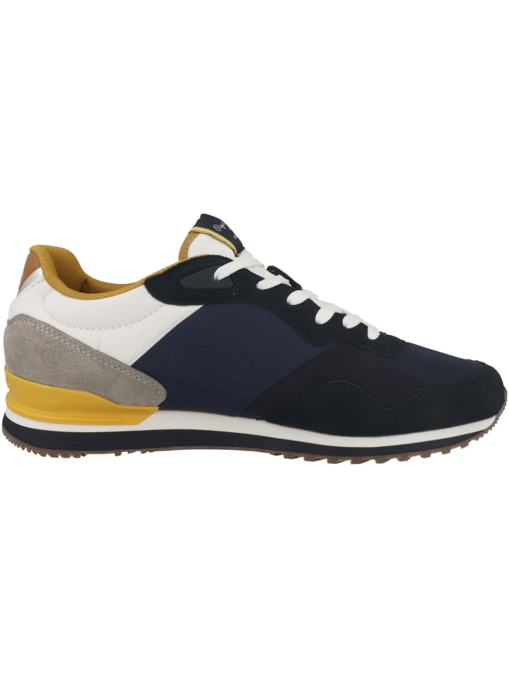 Верхняя часть, состоящая из текстиля и замши, не только прочна и проста в уходе, но и привлекает внимание своим модным сочетанием цветов. Мягкая текстильная подкладка обеспечивает комфортный климат для ног внутри. Съемная стелька с мягкой подкладкой обеспечивает дополнительный комфорт. Надпись Pepe Jean украшает как боковую сторону, так и язычок обуви. Кроссовки застегиваются на классическую шнуровку, что позволяет им идеально прилегать к вашей ноге. Легкая, но стильная обувь, которая идеально сочетается с классическими джинсами или шикарными тканевыми брюками.