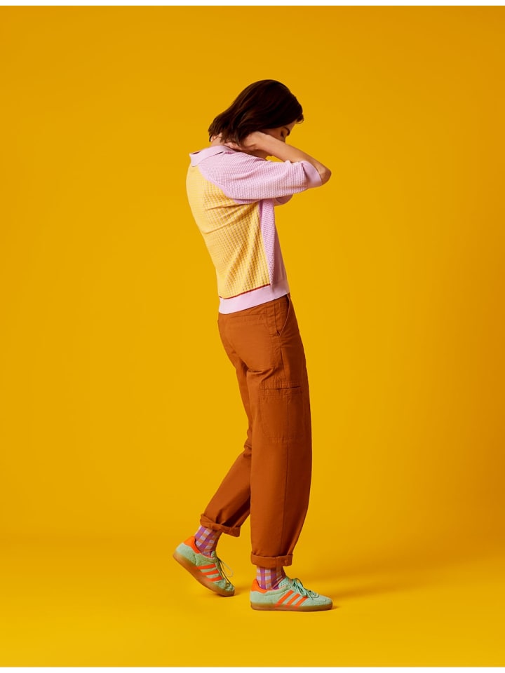 Этот свободный свитер с воротником-поло станет идеальным предметом для создания свежего, современного весеннего образа. Изысканная тонкая вязка имеет современный сетчатый вид, а изнаночная сторона выполнена в другом цвете. - 100% материалы GOTS