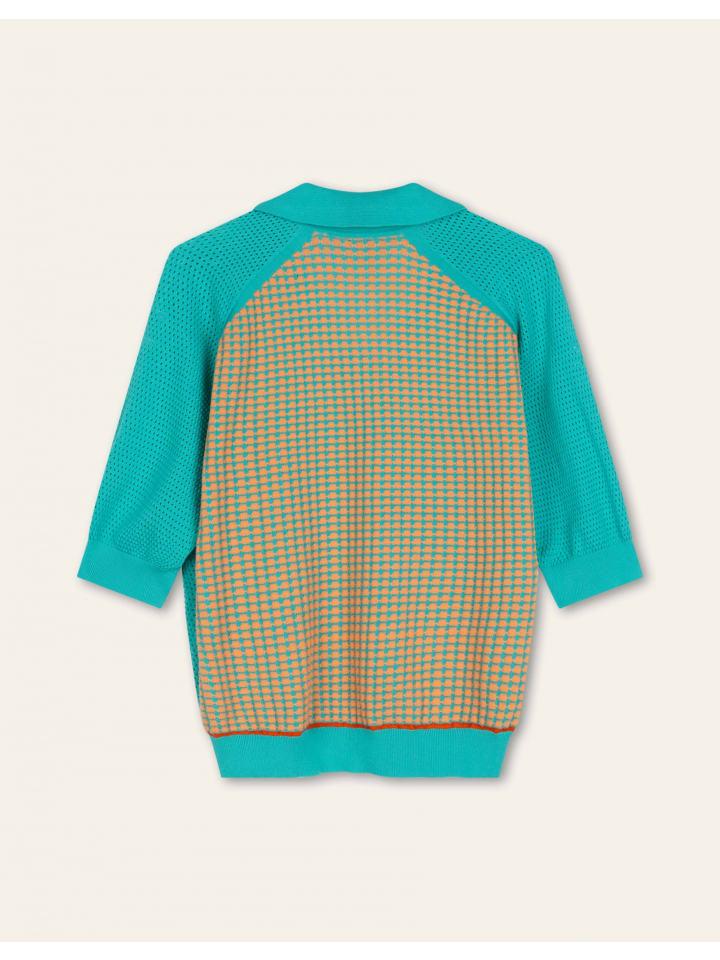 Этот свободный свитер с воротником-поло станет идеальным предметом для создания свежего, современного весеннего образа. Изысканная тонкая вязка имеет современный сетчатый вид, а изнаночная сторона выполнена в другом цвете. - 100% органическая хлопковая пряжа, сертифицированная GOTS - Материал прямого кроя