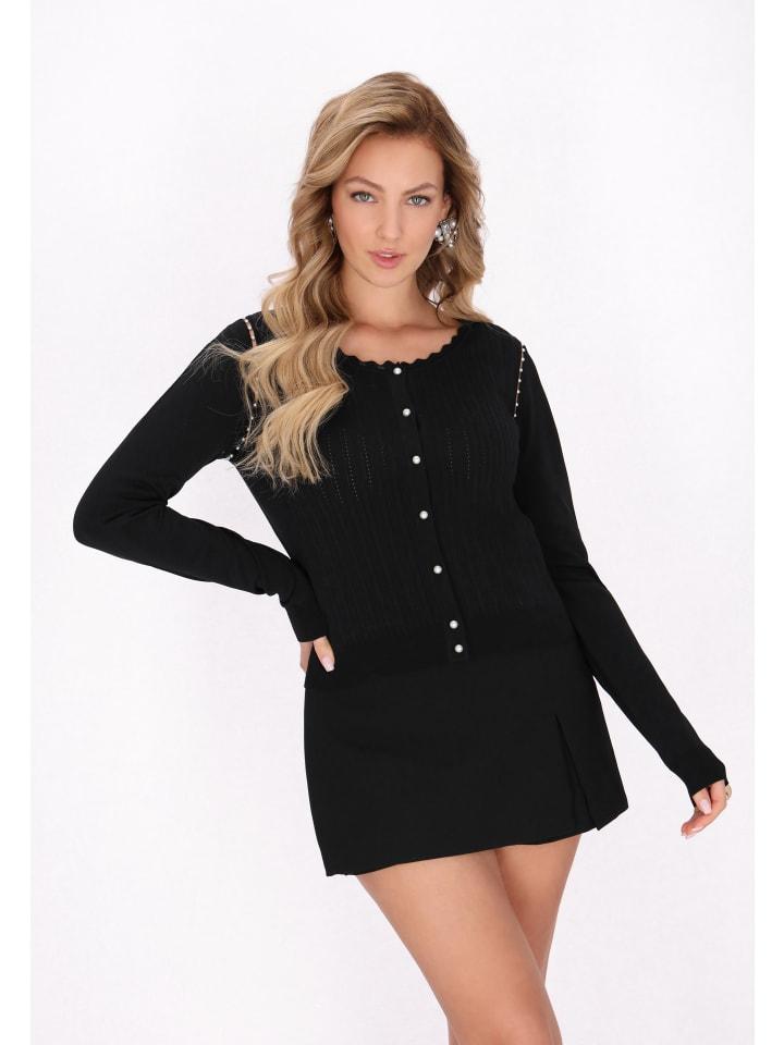 - Кардиган прямого кроя с круглым вырезом и длинными рукавами