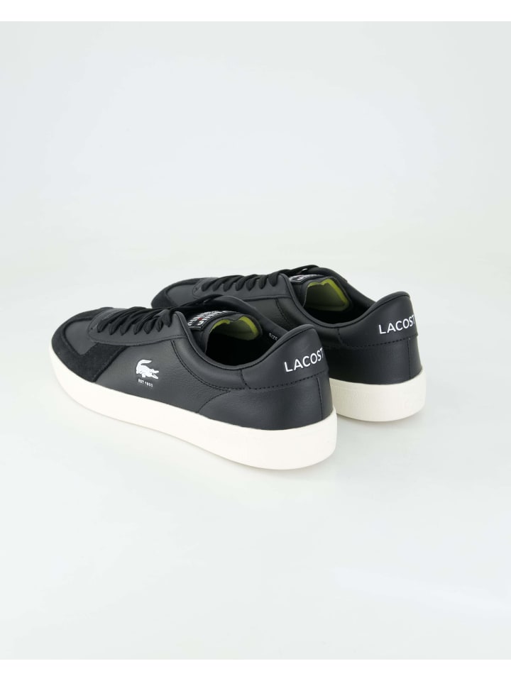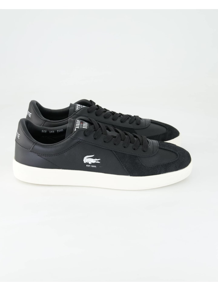 Черные мужские кроссовки Lacoste Baseshot сочетают в себе кожу и замшу, создавая стильный образ. Стелька Ortholite обеспечивает комфорт в течение всего дня, а прочная резиновая подошва обеспечивает надежное сцепление. Идеально подходит для стильных мужчин, которым нужны кроссовки для повседневной носки, отдыха или современного делового повседневного образа. Сдержанный фирменный тиснение и лаконичный дизайн делают его универсальным в сочетании.