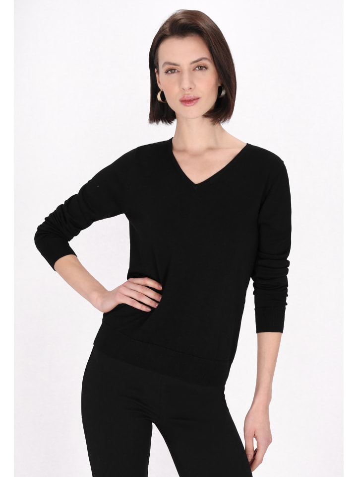 Представляем вам незаменимую вещь для вашей повседневной модной коллекции — свитер с длинными рукавами, V-образным вырезом и классическим кроем, демонстрирующий классический образ. Ребристый подол и прилегающие рукава добавляют элегантности, а мягкий материал обеспечивает комфорт в течение всего дня. Этот вязаный свитер из нашей коллекции Classic Look идеально подходит для повседневных случаев и отличается простотой и стилем. - Свитер обычного кроя с V-образным вырезом и длинными рукавами