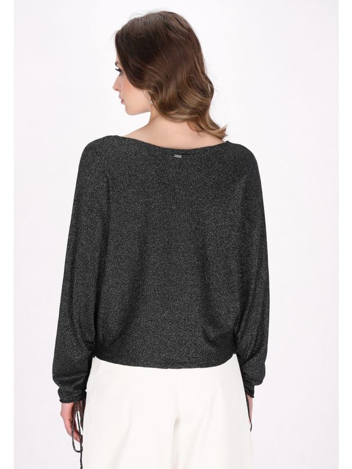 Откройте для себя этот стильный свитер, который отличается свободным кроем и изысканным вырезом-лодочкой. Длинные рукава «летучая мышь», украшенные металлическими нитями, и модные завязки на манжетах добавят изюминку любому образу. Этот вязаный свитер идеально подходит для повседневной носки и станет незаменимой вещью в вашем повседневном образе из коллекции Classic Look. - Свободный свитер с вырезом-лодочкой и длинными рукавами