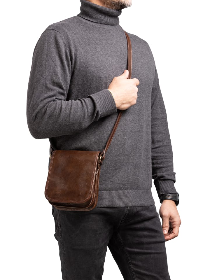 мужская сумка через плечо с магнитной застежкой. один с внутренними карманами на молнии. Передняя часть с открытыми, а задняя - с внешними карманами на молнии. кожаный регулируемый плечевой ремень. отсутствует ручка. два внутренних отсека. Наружный материал. Внутри подкладка из хлопка. Размеры: 20x16,5x10 см. Сделано в Италии 20x16,5x10 см