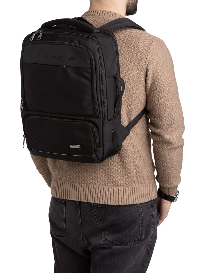 как мужской рюкзак на молнии. два открытых внутренних кармана с USB-кабелем. два передних кармана на молнии, один открытый сбоку и один задний с внешними карманами на молнии. тканевый регулируемый плечевой ремень. в ручке из искусственной кожи. два внутренних отсека. Внешний материал: Внутренний материал: 100% полиэстер. Размеры: 43x30x18 см. Модный продукт 43x30x18 см