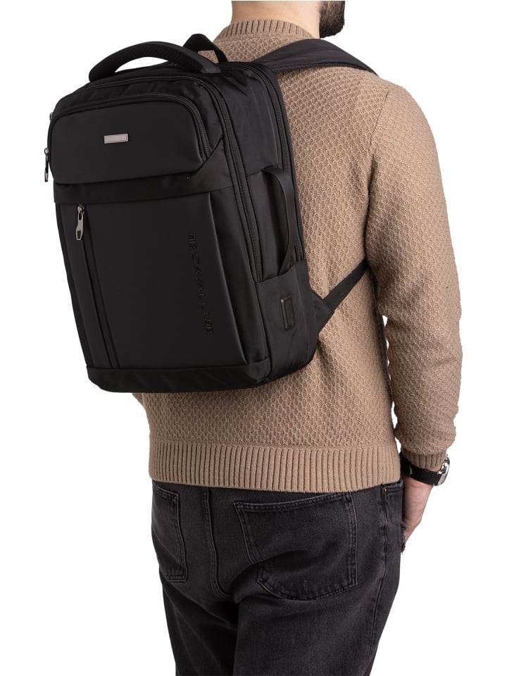 как мужской рюкзак на молнии. два открытых внутренних кармана с USB-кабелем. два передних кармана на молнии, один открытый сбоку и один задний с внешними карманами на молнии. тканевый регулируемый плечевой ремень. в ручке из искусственной кожи. два внутренних отсека. Внешний материал: Внутренний материал: 100% полиэстер. Размеры: 43x30x18 см. Модный продукт 43x30x18 см