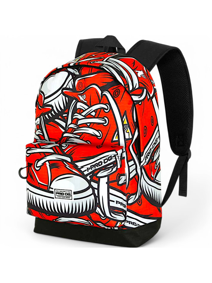 С ярким принтом кроссовок ярко-красного цвета этот рюкзак привлекает внимание.