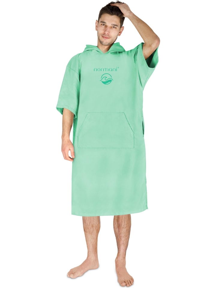 Купальное пончо Normani из легкой микрофибры станет идеальным спутником летом: на пляже, у бассейна или в кемпинге. Благодаря небольшому размеру его можно легко положить в дорожную сумку. На отдыхе пончо можно легко повесить на бельевую веревку всего за несколько часов, так как микрофибра сохнет в шесть раз быстрее хлопка. Купальное пончо на 80% изготовлено из переработанных ПЭТ-бутылок. Характеристики: Пончо для серфингиста из 80% мягкой микрофибры (полиэстера) Впитывающий и быстросохнущий материал Повседневный крой позволяет легко надевать и удобно носить Большой карман на животе с достаточным местом для мобильного телефона, кошелька или даже книги Мягкий и приятный для кожи материал Боковые разрезы позволяют легко переодеваться на пляже или у бассейна Материал: 80% полиэстер (микрофибра) 20% полиамид Инструкции по уходу: Машинная стирка при 40 °C Длина и ширина: S/M: Длина: 95 см / Ширина: 90 см L/XL: Длина: 110 см / Ширина: 105 см