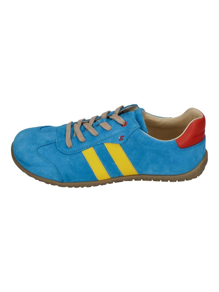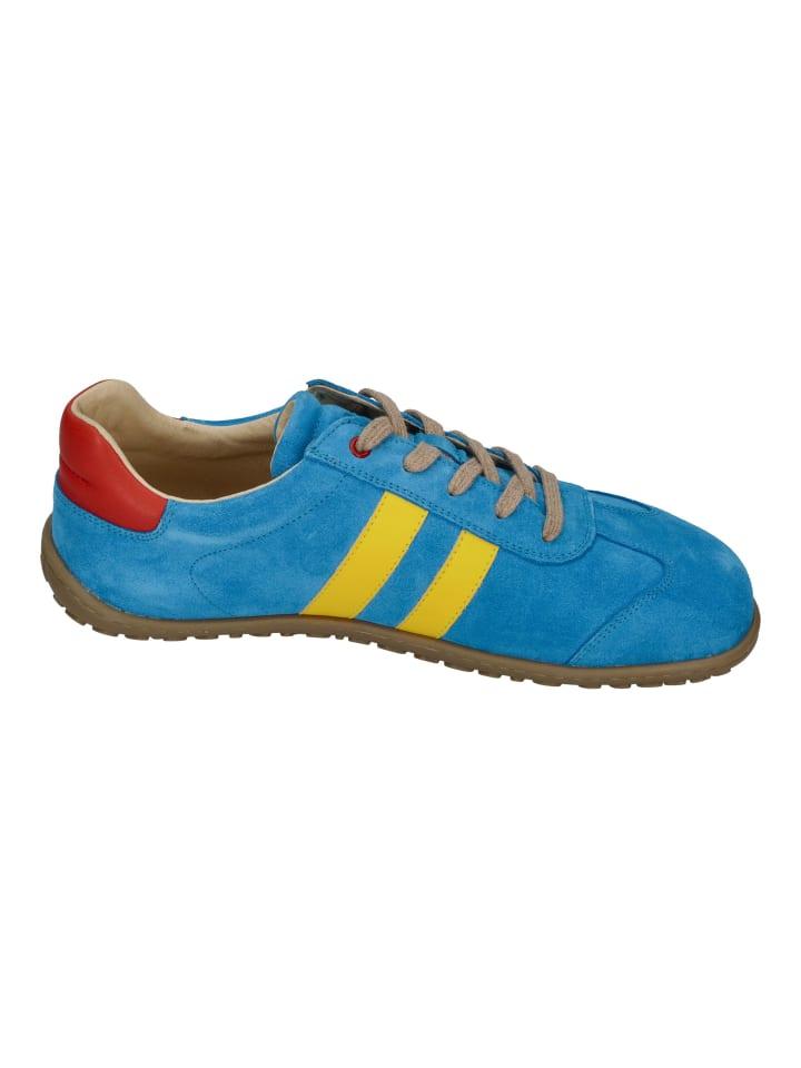 КОЭЛ разработал замшевые кроссовки Ilo для босых ног бирюзово-синего цвета с желтыми и красными деталями, чтобы обеспечить сочетание высокого качества и идеального комфорта. Эти туфли, входящие в коллекцию Koel Zero Heel, позволяют мужчинам свободно передвигаться и чувствовать землю под ногами. Стелька с плоской подошвой простирается от пятки до кончиков пальцев ног для максимального комфорта. Чтобы эти кроссовки прослужили долго, использовалась высококачественная замша.