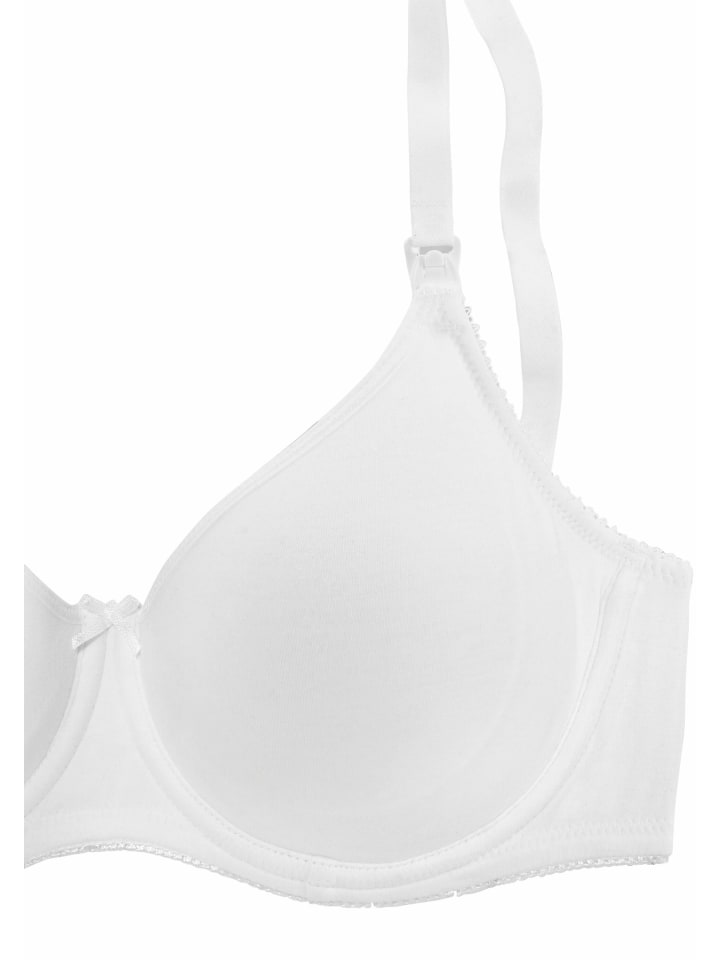 С кронштейном. Бесшовные, предварительно сформированные, без подкладки чашки с мягким хлопком. Чашки можно подсоединять по отдельности. Бретели и застежка на спине регулируются. Бюстгальтер для кормления изготовлен из 93% хлопка, 7% эластана. Бюстгальтеры не подходят для сушки в сушильной машине, так как регуляторы и кольца могут быть повреждены и сломаться из-за высокой температуры. - Бюстгальтер для кормления в доступной двойной упаковке со встроенными косточками и зажимами для кормления на бретелях