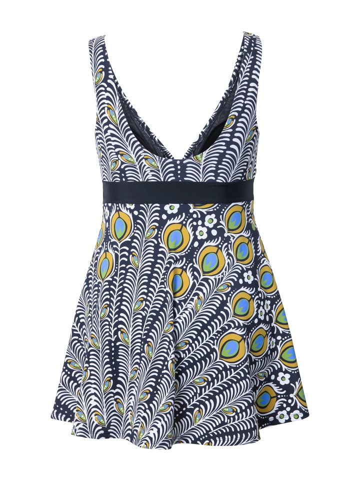 Купальник с мягкими чашками, узором в виде павлина и жемчужной полоской под грудью. V-образный вырез. Невидимый купальник с поясом под грудью и сетчатой подкладкой спереди. С переработанным полиамидом. OEKO-TEX.materials