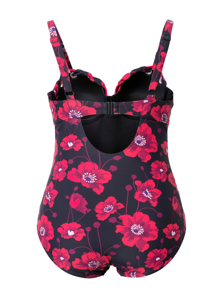 Купальник с мягкими чашками и цветочным узором. Спереди сплошной принт, на груди тонкое кружево. Поддерживающая лента под грудью, подкладка спереди, регулируемые бретели. Изготовлено из переработанного полиамида. OEKO-TEX.materials