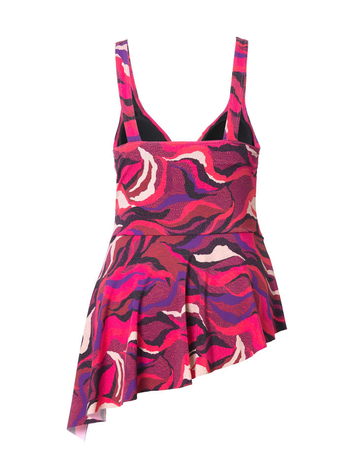 Купальник с мягкими чашками и спортивным волнистым узором. Женственная драпировка под грудью, асимметричный подол. Невидимый купальник с поддерживающей лентой под грудью, подкладка спереди. Изготовлено из переработанного полиамида. OEKO-TEX.materials